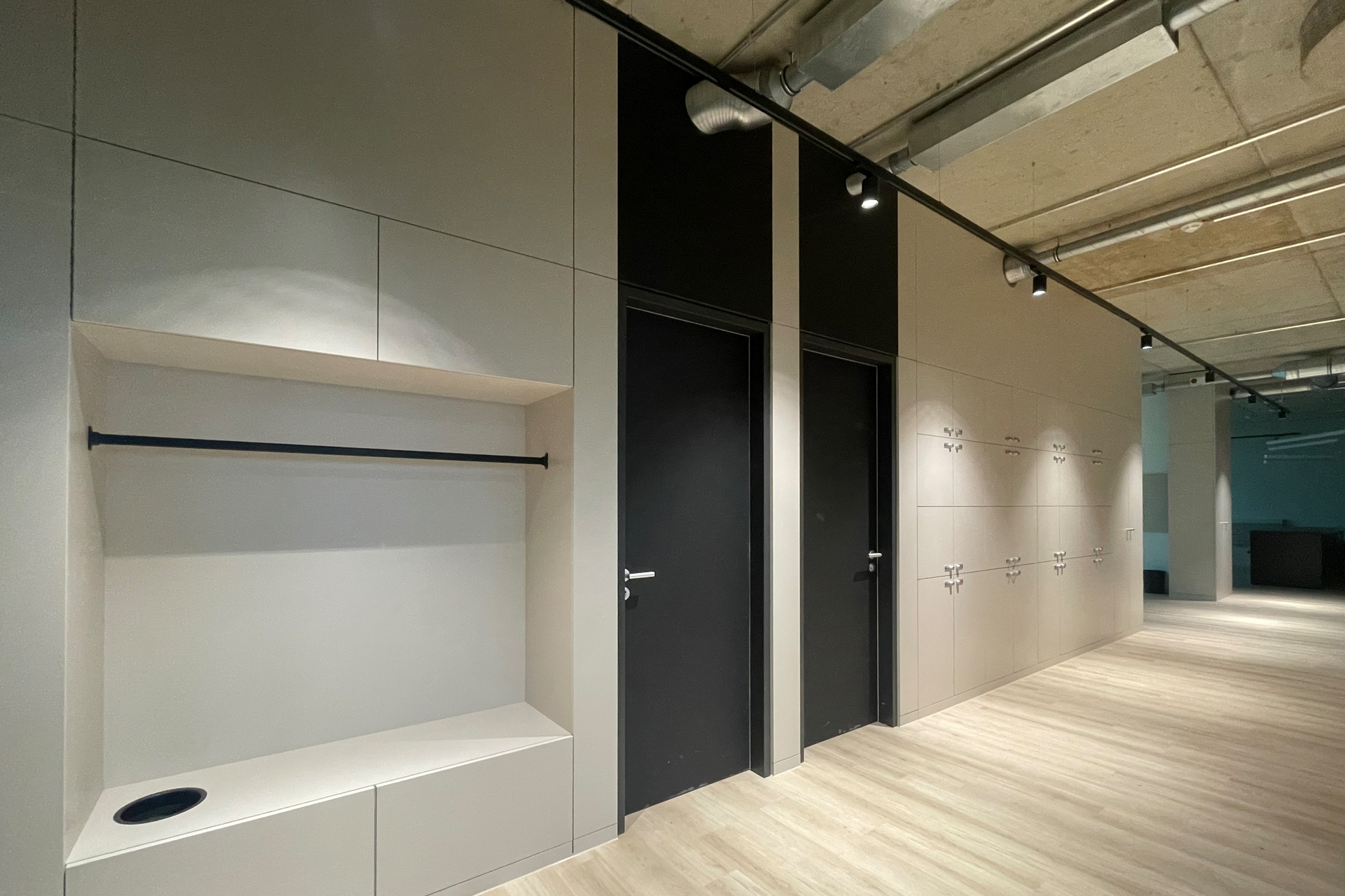 Profil liefert die Festeinbauten wie Lockerschränke, Garderoben und Wandverkleidungen.